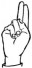 На ћирилици написано ТОДОРА ГОРАНОВИЋ састоји се из 15 слова [?]. Исписано ћириличном једноручном азбуком за глувонеме: